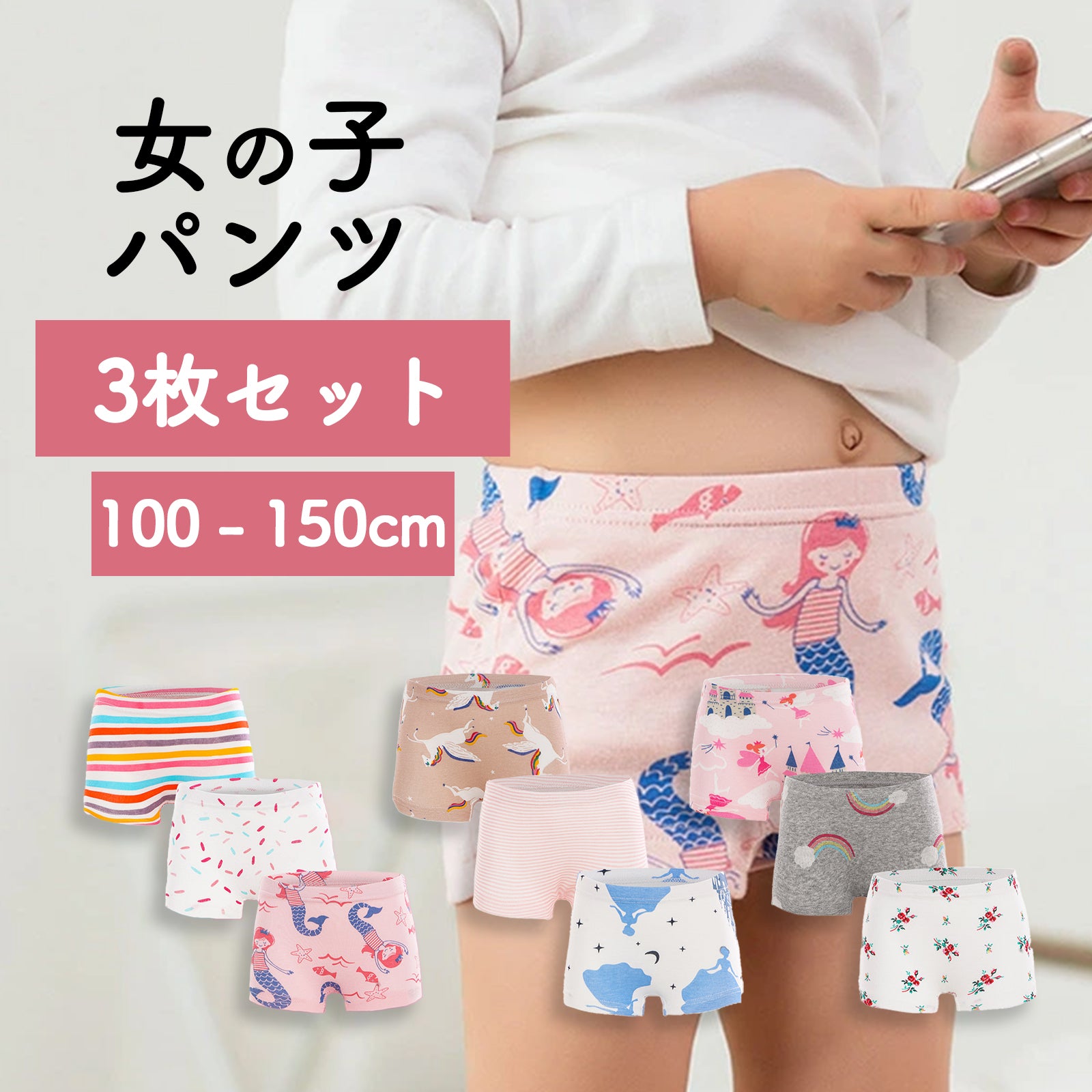 子供用 ボクサー パンツ 3枚 セット セット 綿100% 通気 女の子 ガールズ ボクサーショーツ ブリーフ 幼稚園 下着 こども 子ども